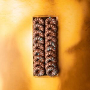 Een heerlijke glutenvrij melk chocoladereep gevuld met ambachtelijke kruidnootjes die wij zelf bakken met de lekkerste kruidnotenkruiden.